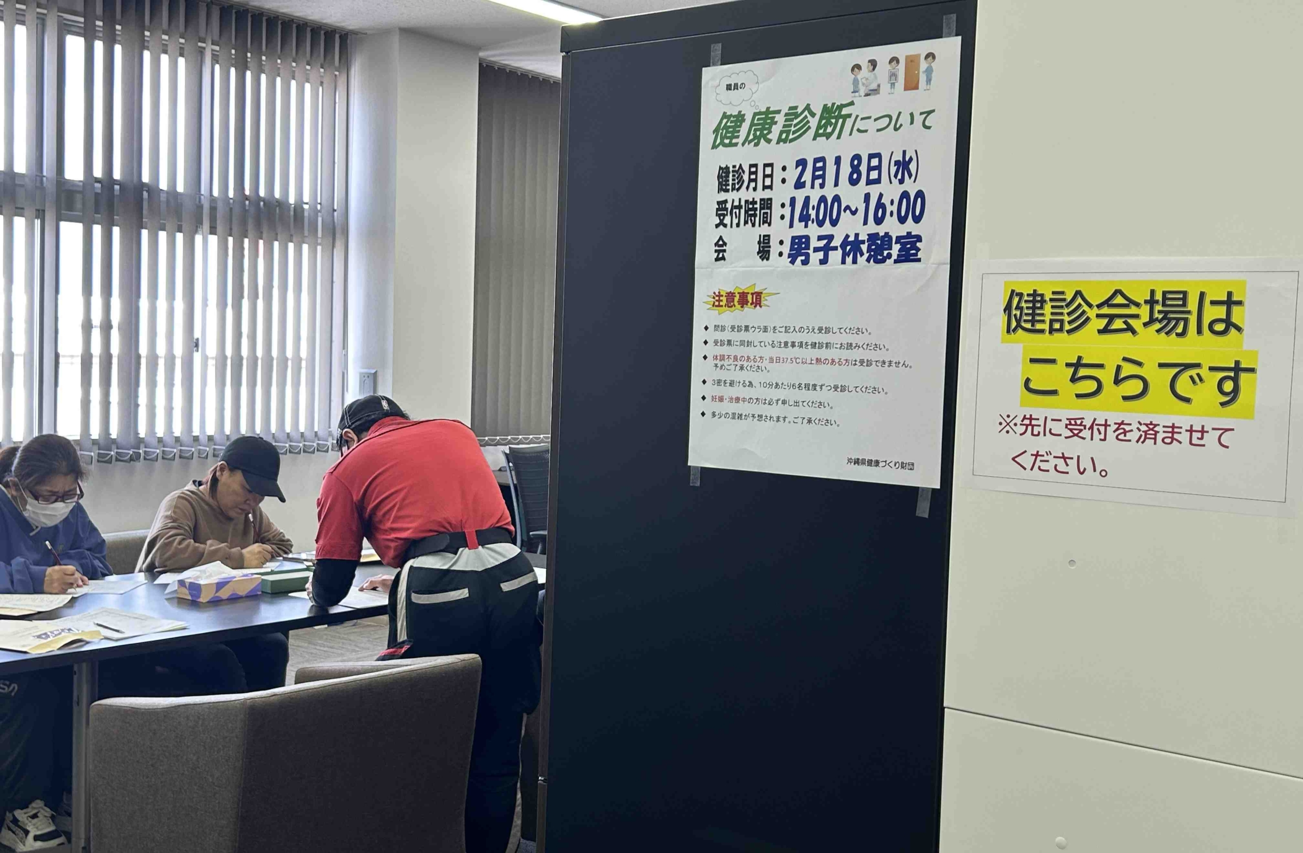 2月18日(水)に沖縄県健康づくり財団のスタッフの方にお越しいただき、本社にて特定従事者健診を実施しました。
