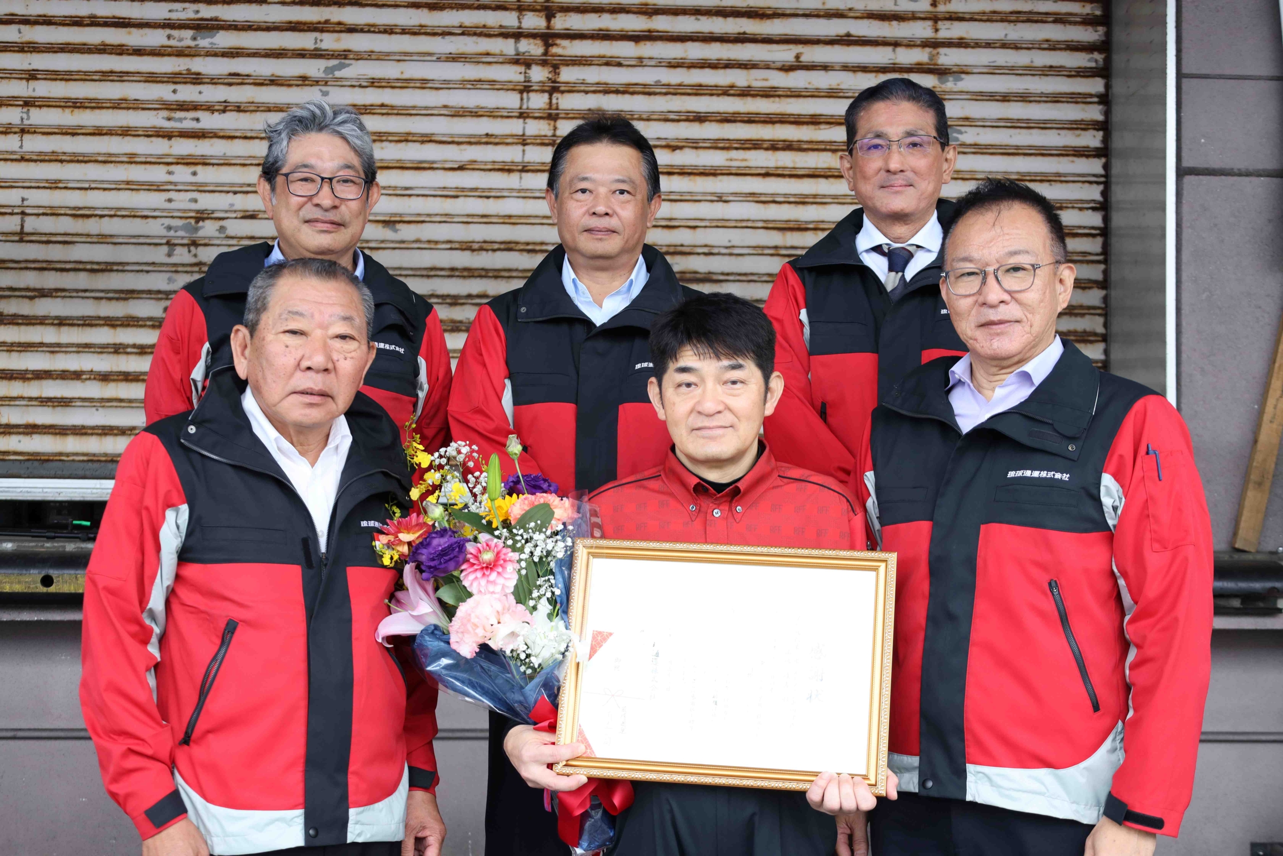 式典では、喜納社長より、これまでの歩みと功績を振り返りながら感謝の言葉が贈られ、感謝状と花束の贈呈が行われました。また、これまで共に業務に携わってきた社員からも労いと感謝の言葉が述べられ、温かく和やかな雰囲気に包まれた式典となりました。